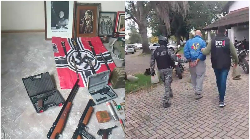 Sin embargo, lo que llamó la atención de los investigadores fueron otros objetos que Gonzalo L. C. atesoraba: cuadros con imágenes de Adolf Hitler, elementos del Tercer Reich, insignias de la Wehrmacht, retratos de Benito Mussolini y otras piezas de colección vinculadas al nazismo y al fascismo. La tenencia de este tipo de materiales podría infringir la ley nacional 23.592 contra actos discriminatorios, que sanciona la promoción de propaganda basada en ideas o teorías de superioridad racial, religiosa o étnica, con penas de 1 mes a 3 años de prisión.