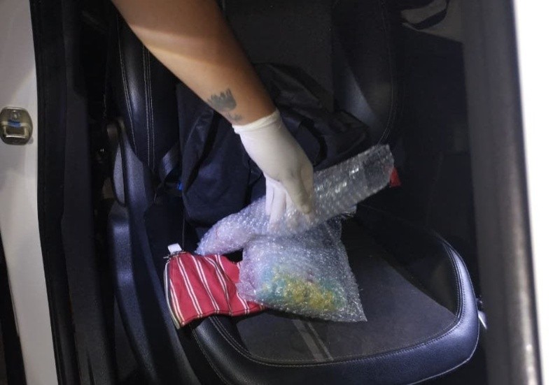 Del rodado se retiraron un total de 563 pastillas de éxtasis con distintos logos, 70 dosis de LSD del llamado micropunto, 320 gramos de posible ketamina y 215 gramos de cristal, cuyo gramo, a la venta minorista, oscila los 50 mil pesos.