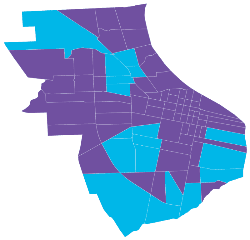 En Rosario, el mapa también se tiñó de violeta. Aunque la diferencia fue más ajustada, La Libertad Avanza ganó en el centro, macrocentro, norte y oeste de la ciudad. En el sur también consiguió imponerse en algunos sectores como Tiro Suizo.