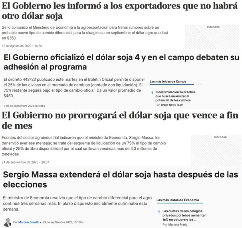 MG: Tal cual, pero esperemos que termine mejor. Sobre este tema del dólar soja extendido, lo mejor que vi fue este recorte que hizo uno de los jóvenes analistas financieros más seguido en este momento, que es Salvador Vitelli, que muestra la previsible imprevisibilidad de Massa.