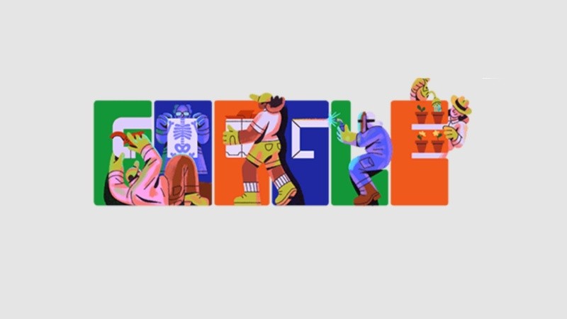 En la fecha del calendario en la que trabajadoras y trabajadores celebran su día, el buscador presenta un logotipo integrado por gráficos que replican distintos oficios.