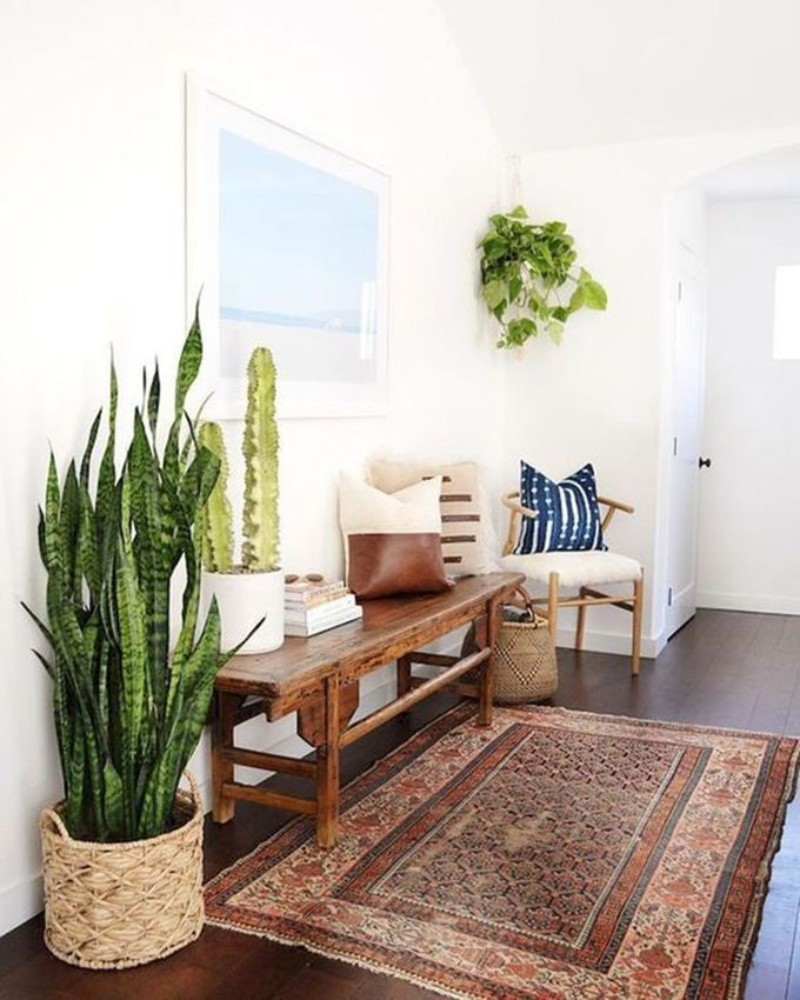 -Potus: Se trata de una planta muy noble ya que no necesita mucha luz, tolera bastante bien la sequía y, además es muy decorativa. Sus hojas verdes que pueden tener vetas amarillas o blancas hace que sea muy vistoso ubicado en estanterías o colgando desde una repisa.