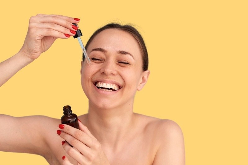 -Aplicar 3–4 gotas de sérum con Vitamina C sobre rostro y cuello. Darle toquecitos para mejor absorción.
