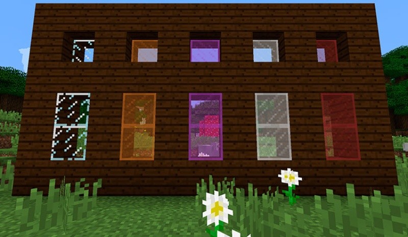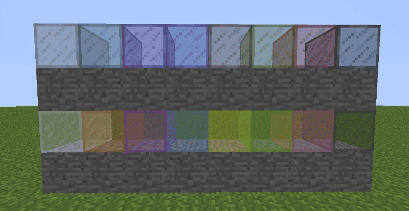 Además, utilizando x8 bloques de cristal + x1 tinte (éste en el medio y el resto de bloques rodeándolo), se logrará que el cristal se tiña.