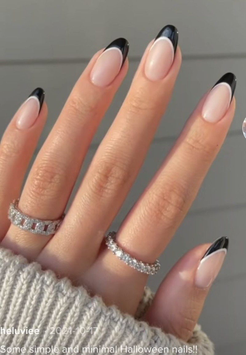 Una de las combinaciones más elegantes y versátiles en el mundo del nail art es la de las uñas estilo francesitas con una forma almendrada. Lo cierto es que, más allá de la punta blanca, el negro se cuela como la otra opción más buscada a raíz del sutil detalle de un color oscuro en escasa cantidad que expresa un signo de completa elegancia.