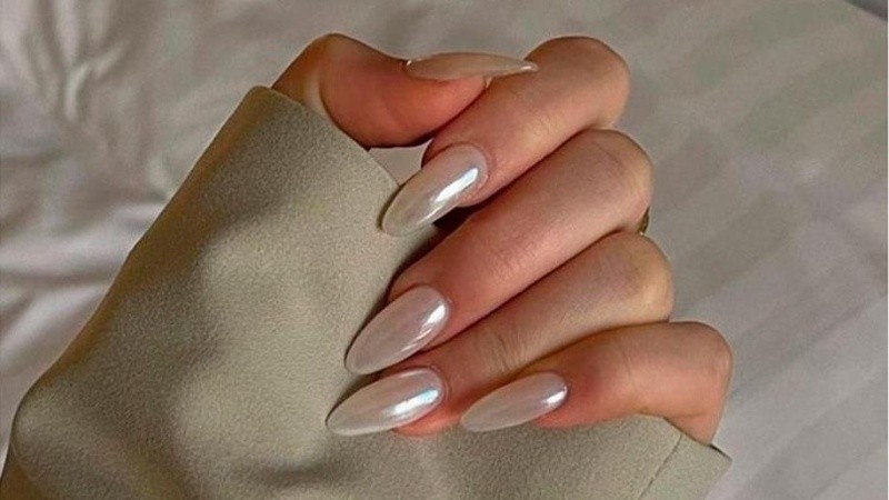 -Blanco perlado o lechoso con acabado glossy: Elegante, luminoso y fácil de combinar, este diseño simboliza nuevos comienzos y funciona tanto en uñas cortas como largas. Puede llevarse liso o con un leve efecto nacarado que refleje la luz y sume un aire festivo sin exagerar.