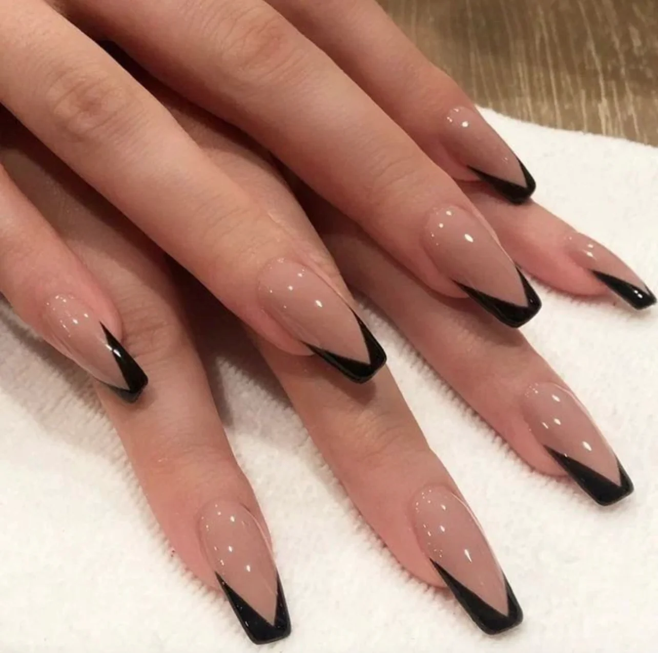 La clave de esta tendencia está en el contraste compuesto por bases nude, lechosas o translúcidas combinadas con puntas negras definidas, finísimas o incluso ligeramente difuminadas. El efecto es pulido pero con carácter, ideal para quienes aman lo clásico pero necesitan un detalle que marque diferencia.